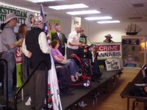 “I proudly represent Gary Johnson, who understands this whole drug war system,” Gray said, garnering loud applause. “He stands with you today, and I stand with him. There is no hope for medical marijuana dispensaries if either Obama or Romney is elected — only Gary Johnson will ensure their survival.”