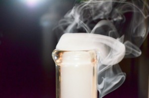 I like to smoke from a bong. My bong is about 2 feet tall and hand-blown of thick, clear glass. It has an ice cube chamber and a nice large bowl. These days my favorite strain goes by the moniker of “Blue Dream” which is a heavy Sativa (I generally top it with a touch of heavy Indica, “Pez” is my current favorite Indica strain). I pack my bowls densely. Before I smoke, I suck a little on the bong to listen to how much air is getting through. After I am sufficiently happy with the amount of airflow, I take several long slow breaths to prepare my lungs and ensure that I will have enough lung capacity to finish the bowl in one hit. I take one final, lung-clearing, exhale and position my lips to ensure a strong seal.