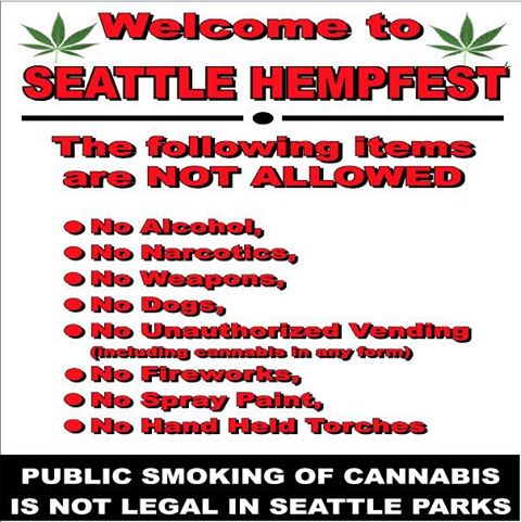 Vivian McPeak, the founder of the event who continues to work tirelessly each year to help the protestival continue, knows that these rules are not going to be popular among attendees but cautions following them is critical. I couldn’t possibly explain it better than he did, so I won’t even try. In the post accompanying this picture he said, “These prohibited items are not optional or negotiable for Hempfest. Getting the Seattle Special Event Permit, the Olympic Sculpture Park agreement, and the Port of Seattle use agreement every year is, to be honest, like pulling off a Jedi mind-trick Houdini magic act every single year. Please spread the word, observe our limited guidelines, and enjoy a brand of freedom that you will not find anywhere else in the entire world. We must pull it off safely, responsibly, and effectively or, frankly, this will be the last Seattle Hempfest. The chips have never been bigger, the pressure has never been so great to perform. One bonehead could ruin it for everyone. So, we will be enforcing the rules and guidelines full force, as we have made agreements that we intend to keep with the City of Seattle, which, with all the headaches and permit nightmares, has been extremely good to Seattle Hempfest. Our audience has helped us to throw 21 years of peaceful, safe protest rallies. This year needs to be the 22nd…”