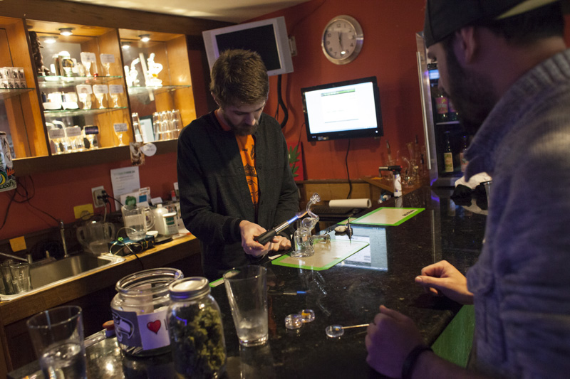 I promise you it is as simple and awesome as it sounds. Downstairs is the Whole Foods of dispensaries, I’m serious, weed every way you can process it and brand variety that cures erectile dysfunction. However, it was when I got upstairs that I really got wood. There for the taking was a fully functioning dab bar, armed to the teeth with fantastic glass and manned by a skilled dab tender. Are you fucking kidding me? I was in heaven.
