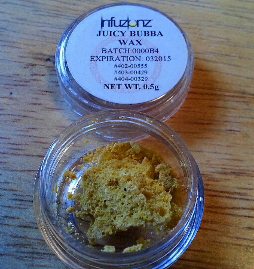Juicy Bubba is a cross of Juicy Fruit (a hybrid strain with a great taste that lives up to its name) and Bubba Kush (a classic indica strain with an equally great taste). The flavor is subtle and fruity with a crispy and very clean taste. Even the most blond and crumbly wax can often be too messy, but this wax came out in nice big chunks that readily fell apart and was very easy to work with, both flashing and just taking it straight on the nail.